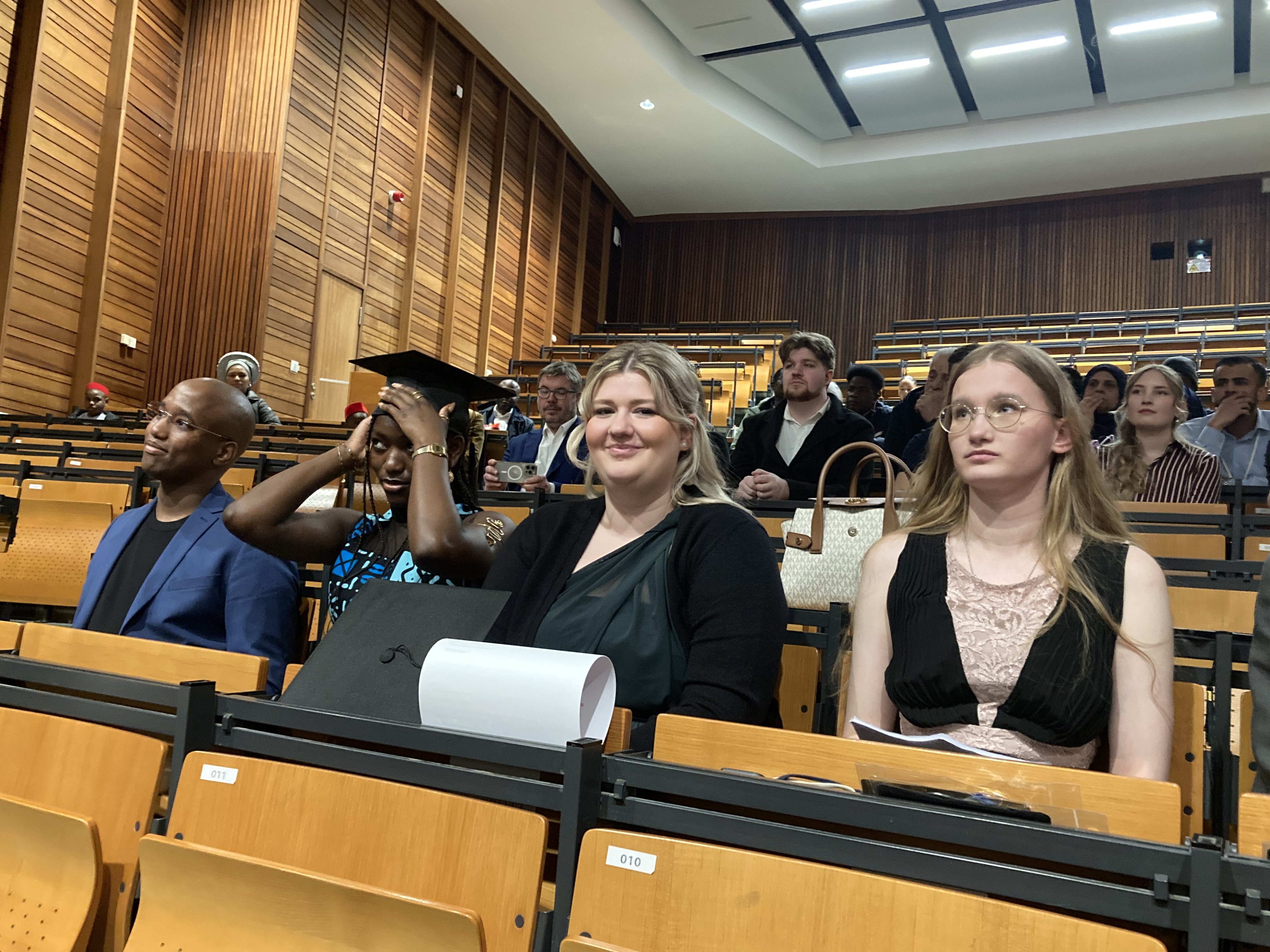 Für einen besonderen Moment sorgte Absolvent Mathis Böhler, der anhand einer Präsentation die Entwicklung der Kohorte humorvoll Revue passieren ließ. Grundlage war eine interne Umfrage im Semester, deren Ergebnisse für zahlreiche heitere Rückblicke sorgten.