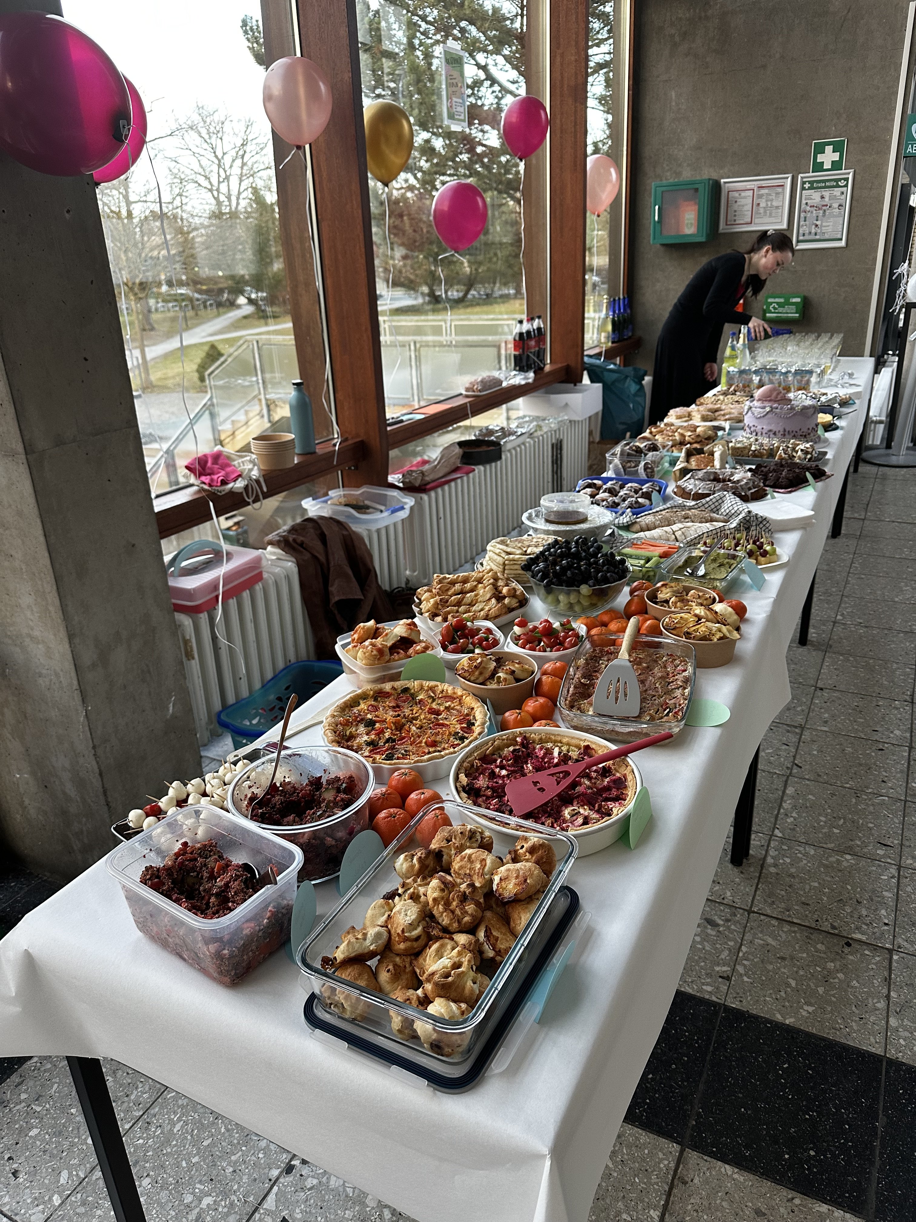 Im Anschluss eröffneten die Absolvent:innen die Ausstellung „Was wir sonst noch so gemacht haben“, die Einblicke in ihre Studienzeit gibt. Ein Sektempfang sowie ein vom ersten Semester gestaltetes Kuchenbuffet boten Gelegenheit, den Abschluss gemeinsam mit Familien, Gästen, Praxispartner:innen und Lehrenden in festlichem Rahmen zu feiern.