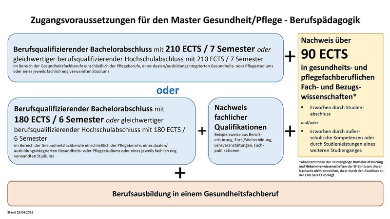 Die Bewerber:innen müssen einen berufsqualifizierenden Bachelorabschluss oder einen gleichwertigen berufsqualifizierenden Hochschulabschluss in der Regel mit einer Regelstudienzeit von mindestens sieben Semestern und im Fall der Modularisierung mit 210 ECTS-Leistungspunkten in dem Bereich der Gesundheitsfachberufe einschließlich der Pflegeberufe, eines dualen/ausbildungsintegrierten Gesundheits- oder Pflegestudiums oder eines jeweils fachlich eng verwandten Studiums abgeschlossen haben.