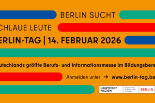 Kommt zum Berlin-Tag. Trefft das Team der EHB auf Deutschlands größter Berufs- und Informationsmesse im Bildungsbereich, am 14. Februar 2026, von 9.00 bis 15.30 Uhr am U-Bahnhof Gleisdreieck. Infos, Beratung zum Studium und Vortrag.